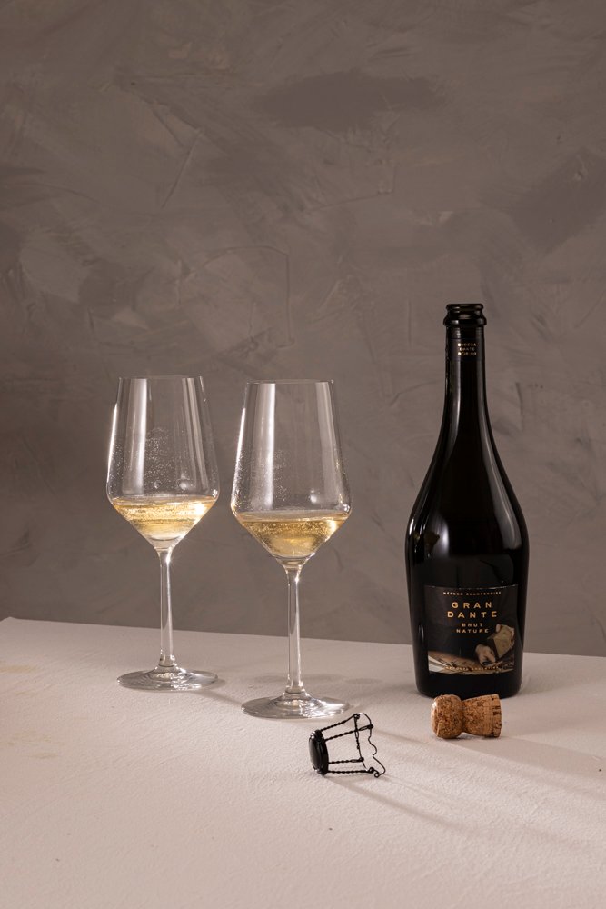 El Gran Dante Brut Nature es una expresión de sofisticación. Elaborado bajo el método champenoise tradicional, combina 50% Chardonnay y 50% Pinot Noir provenientes de Ugarteche, en Luján de Cuyo. Además, este año fue reconocido con 93 puntos por el crítico británico Tim Atkin. También recibió la medalla de oro en el concurso organizado por Guarda 14, distinciones que confirman su calidad y consistencia.