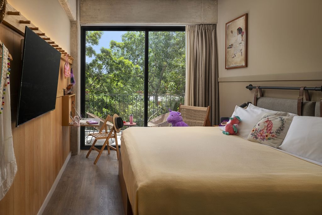 Las habitaciones combinan funcionalidad y diversión: mobiliario modular, distribución práctica y tecnología intuitiva —desde iluminación LED con sensores de movimiento hasta acceso sin llave—. Hay opciones Double-Double con dos camas Queen o literas Twin para grupos de amigos o familias.
