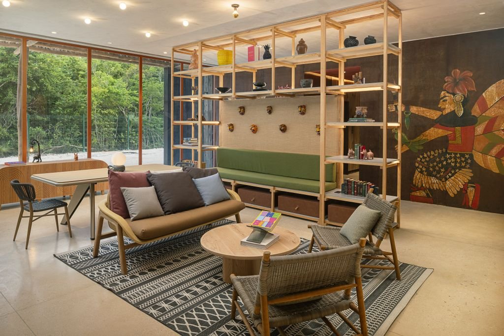 El hotel invita a los huéspedes a descubrir detalles únicos, como un banco tallado en forma de jaguar o el juego interactivo Find the Jaguar, que propone buscar figuras ocultas del felino por toda la propiedad.