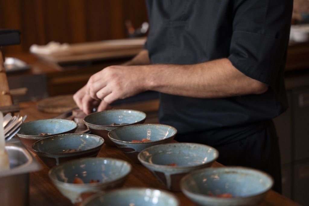 Minutos después, el ambiente empezó a llenarse. El murmullo suave, el sonido de los cuchillos y la barra ocupándose por completo terminaron de crear ese clima tan particular de los omakase: atención plena, respeto por el producto y una cercanía que no se disimula.